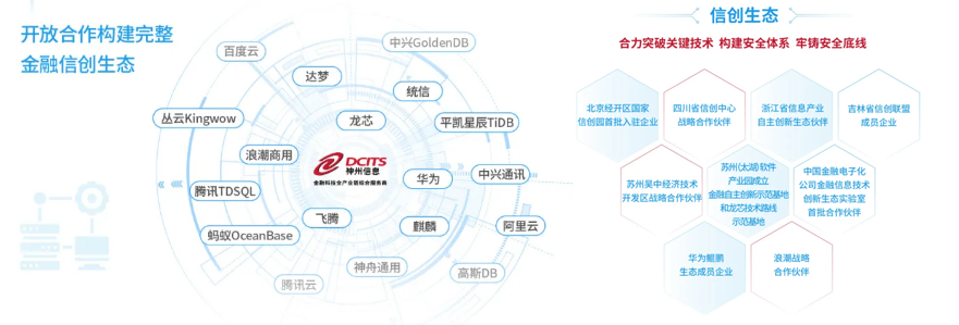 第四,实现最全合作生态、最广市场覆盖。已构建金融业规模最大的信创生态体系,包括入驻国家、省级的信创园区及示范基地;与产业生态伙伴形成信创联盟、战略伙伴关系,推进联合解决方案落地;以及与金融组织创建联合实验室,进行技术产品创新等,进而广泛地有助于金融信创产业加速开展。合力突破关键技术,构建安全体系,牢铸安全底线。