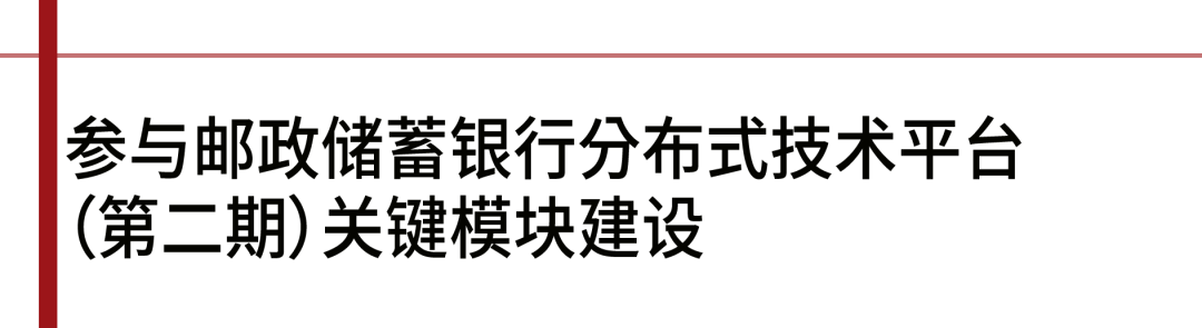 今年4月,邮储银行新一代分布式核心技术平台(一期)成功投产上线,凯发k8国际信息作为新核心建设重要参与者,在技术平台一期建设中承担产品装配和差异化定价两个关键功能的咨询、设计和需求编制等工作。一期项目上线,为邮储银行后续新核心建设夯实了基础。